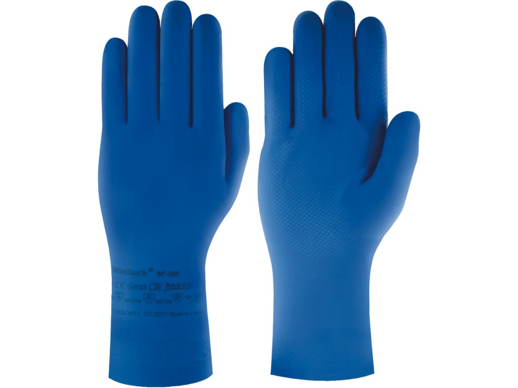 Jsou také speciálně ošetřeny, aby se snížilo riziko alergických reakcí. Rukavice AlphaTec® 87-195 mají podšívku ze 100% bavlny, která snižuje pocení a nepohodlí. Vyznačují se chemickou ochranou podle normy EN 374 typu B, která je chrání proti mírným kyselinám, živočišným tukům, olejům, čisticím prostředkům a alkoholům. Díky svému velmi tenkému složení se vyznačují vysokou citlivostí na dotek, což umožňuje přesnější manipulaci.