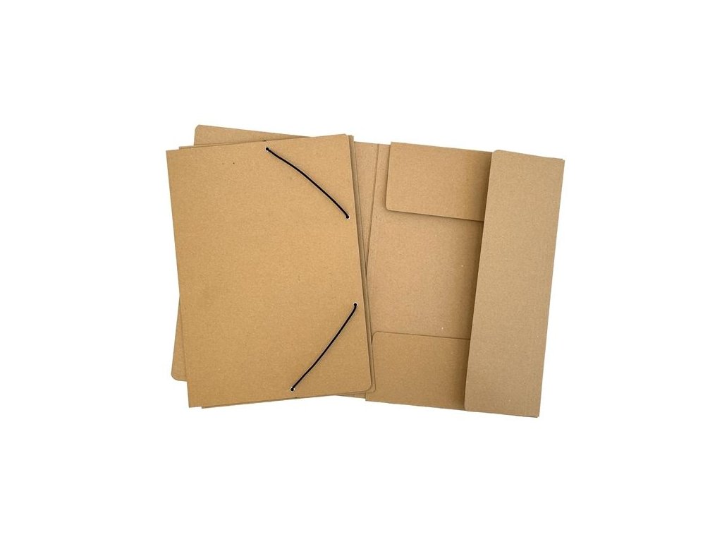 Papírové kraftové desky formátu s třemi chlopněmi a gumičkou jsou ekologickým a praktickým řešením pro ukládání dokumentů. Pevný kraftový karton zajišťuje dobrou ochranu obsahu, zatímco gumička zabraňuje samovolnému otevření. jsou šetrné k životnímu prostředí a vhodné pro každodenní použití ve škole, kanceláři i domácí pracovně.