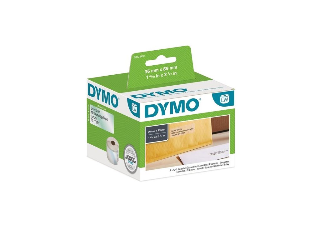 Štítky Dymo LW (99013) 89x36mm. Tiskárna DYMO LabelWriter používá k tisku štítků technologii termotisku, díky němuž můžete zapomenout na často špinící a drahé inkoustové náplně či tonery. Vzhledem k tomu, že štítky jsou dodávány v souvislých rolích, můžete stejně snadno vytisknout jeden štítek nebo stovku štítků. To vše bez obav z uvíznutí archů se štítky, bez tradičních potíží s rozvržením a bez plýtvání materiálem. Trvanlivé bílé papírové štítky jsou ideální pro většinu štítkovacích úkolů.