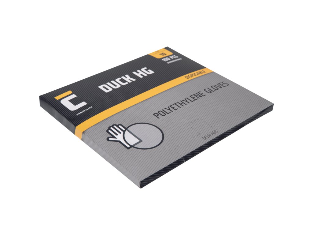 Jednorázové rukavice z transparentní polyetylénové fólie. Balení je možné zavěsit. Obsahuje 100 kusů.