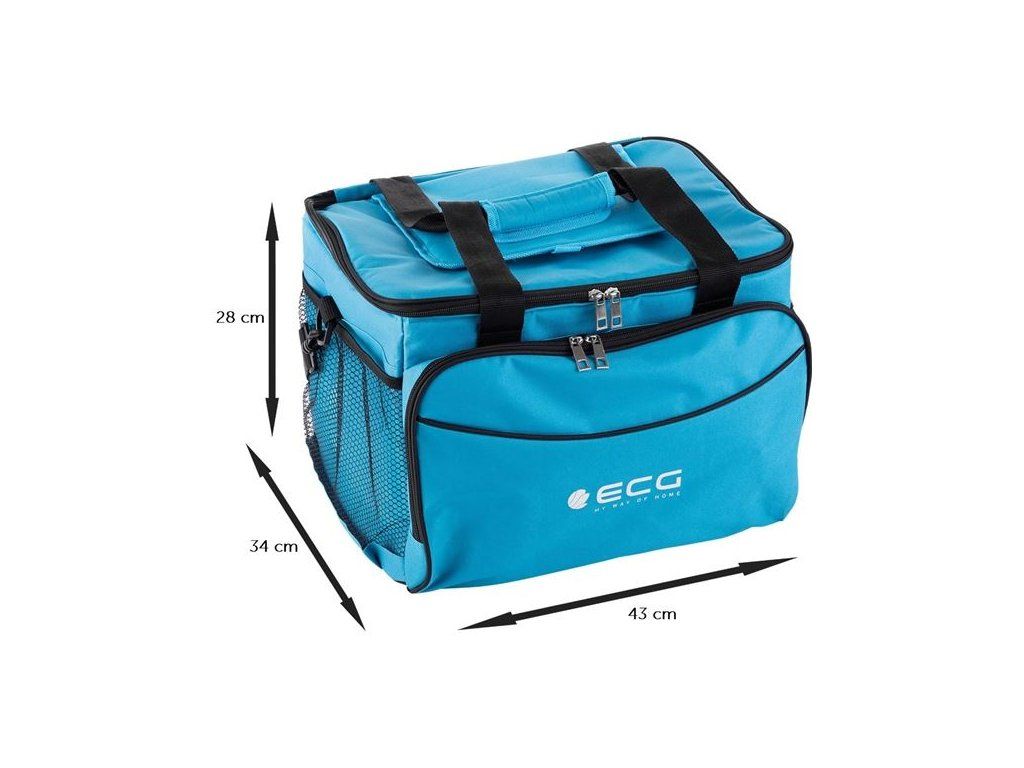 Přenosná autochladnička ECG AC 3010 C v elegantní modré barvě nabízí chlazení i ohřev, objem 30 litrů a napájení z 12 V i 230 V.