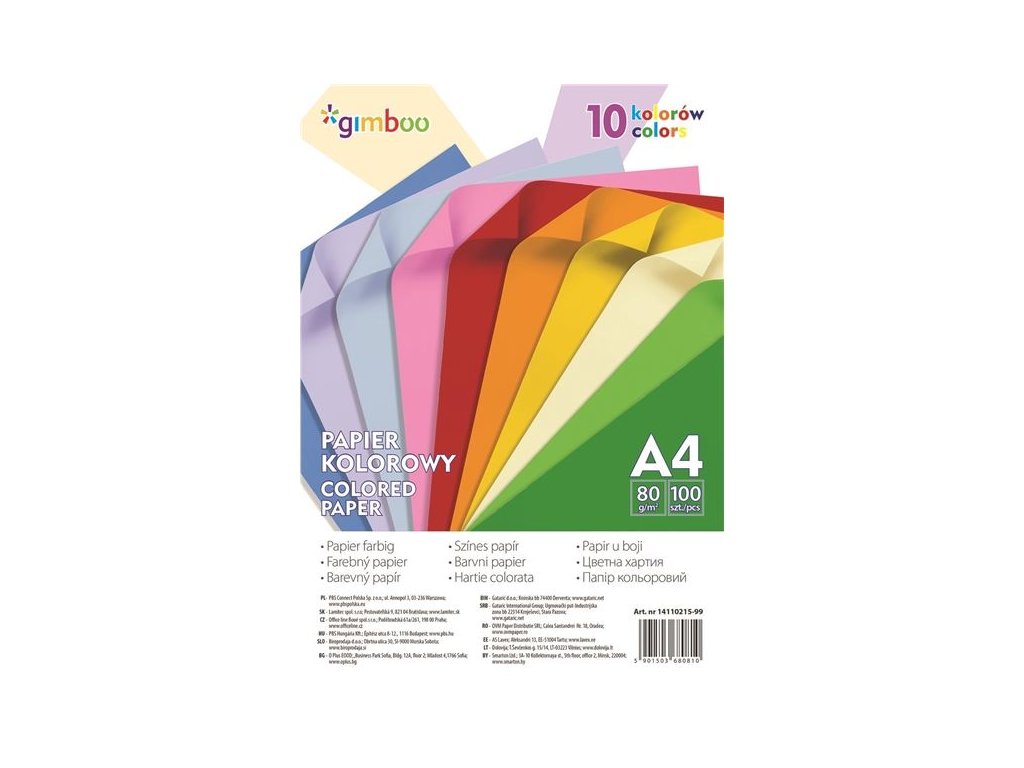 Bar.papíry Gimboo A4 - 100 listů, 10 neon.barev