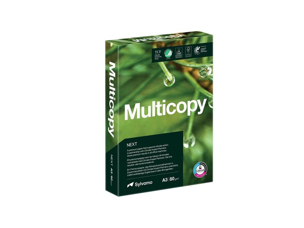 Prémiový kancelářský papír MultiCopy Next s vysokou bělostí a hladkým povrchem pro profesionální tisk ve všech typech tiskáren.
