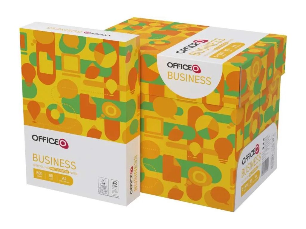 Kancelářský papír A4 OFFICEO Business – 80 g/m², 500 listů je univerzální a výkonný kancelářský papír formátu A4 (210 × 297 mm) s klasickou gramáží 80 g/m², navržený pro náročné každodenní použití v kancelářích i podnikatelském prostředí.