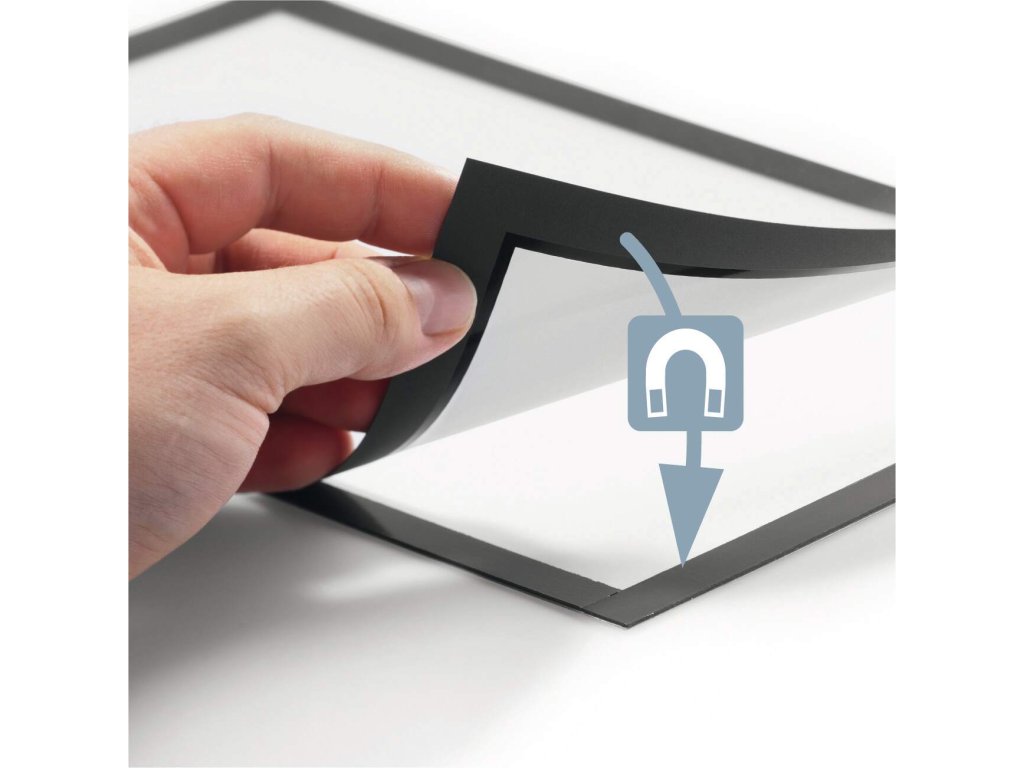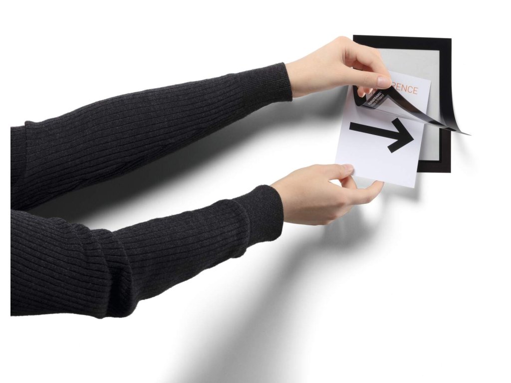 Ideální pro prezentaci informací a dat jako je strojní dokumentace, každodenní provozní ukazatele nebo informace pro zaměstnance. Pro dokumenty ve formátu A6, jako jsou např. cedule pro označení prostor, orientační informace a nabídky. Snadné připevnění na veškeré hladké povrchy bez použití nářadí. Lze je například znovu sejmout ze skla. Rychlé vkládání a výměna dokumentů jednoduchým zvednutím magnetického rámu od povrchu. Stejný vzhled rámečku z obou stran. Lze použít ve formátu na výšku i na šířku.