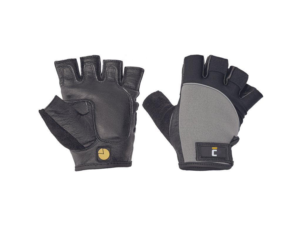 Rukavice bez prstů z jemné kozinky v dlani s gelovou vložkou, Lycry a neoprenu na hřbetu, a se stahovací manžetou na suchý zip.