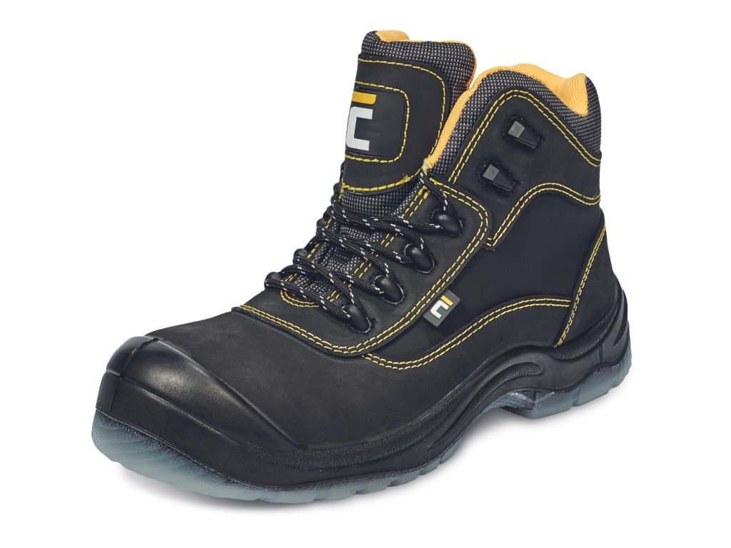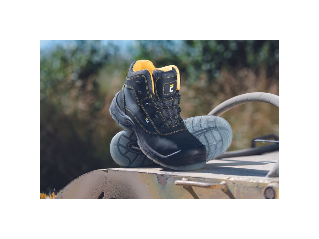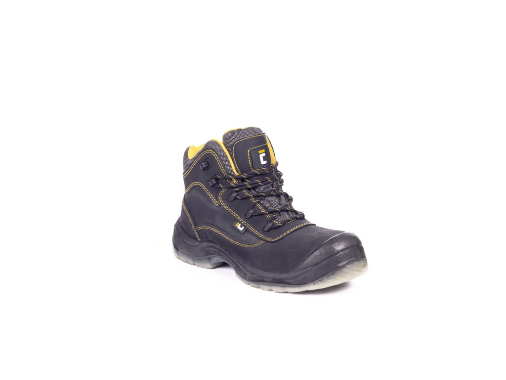 Bezpečnostní kotníková obuv s nekovovou tužinkou a aramidovou stélkou odolnou proti propíchnutí. Podešev z PU/TPU. Svršek z kvalitní kůže – nubuk.