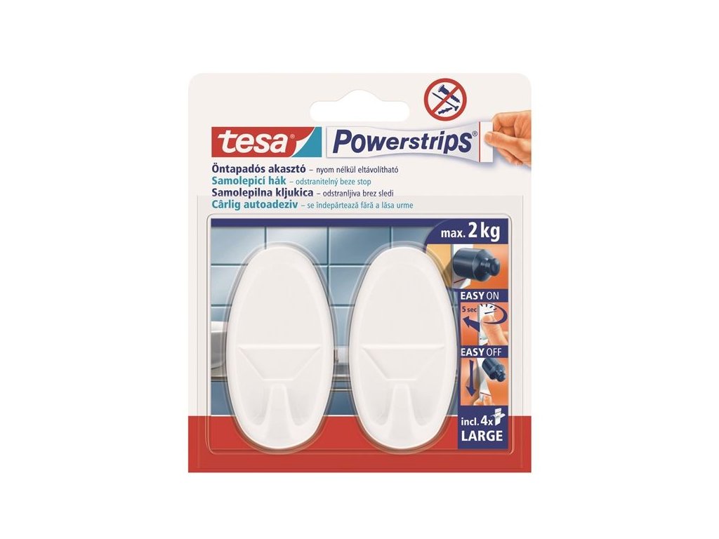 Samolepicí háčky Tesa Powerstrips bílé – nosnost 2 kg, 2 kusy