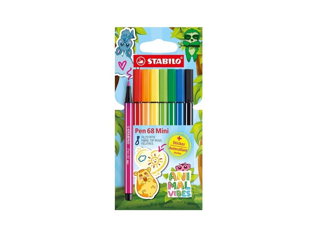 Objev kreativitu v mini formátu s fixy STABILO Pen 68 Mini Animal Vibes! Tato stylová sada obsahuje 8 intenzivních barev a zaujme nejen kvalitou, ale i hravým designem se zvířecími motivy.