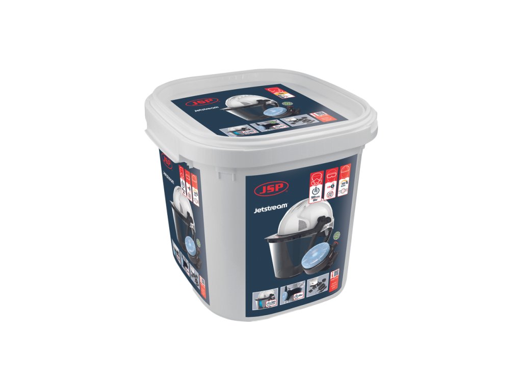 Jetstream® Dust Constructor Kit (TH2P R SL) s Multi Plug Jetstream® je dobíjecí respirátor připevněný na opasku s velkokapacitním jednorázovým filtrem, který dodává čistý vzduch vysoce flexibilní vyztuženou hadicí k různým náhlavním soupravám pro různé aplikace. Pohodlí Jednotka s plně automatickým alarmem a integrovanou baterií připevněnou k širokému pohodlnému bedernímu pásu. Kompletní jednotka a pás váží pouhých 765 g. (Hmotnost závisí na variantách modelu) Vysoký výkon 180 litrů vzduchu za minutu je dodáváno přes filtr Jetstream® přes vysoce flexibilní hadici do požadované náhlavní jednotky. Jetstream® Dust Constructor Kit (TH2P R SL) Přepravní pouzdro sady Jetstream® Dust Constructor obsahuje: Bezpečnostní přilba EVO®5 s utěsněným polykarbonátovým zorníkem Ohebná hadice prachové filtry PSL Průtokoměr Dobíjecí baterie Zásuvkový adaptér pro více regionů.