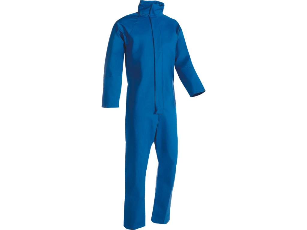 Nepromokavá kombinéza s kapucí v límci. Modrá pracovní kombinéza má zapínání na zip překryté klopou s druky a vysokofrekvenční zatavené švy. Výhodou jsou elastická záda v pase. Manžety rukávů a spodní okraj nohavic se zapínají na druky. Kombinéza má raglánové rukávy umožňující snadný pohyb, je voděodolná, větruodolná a prodyšná. Pro svou odolnost vůči chemikáliím a oleji se stala oblíbeným výrobkem v chemickém průmyslu, strojírenství, zemědělství a zahradnictví. Jsme B2B obchod s náhradním plněním zdarma.
