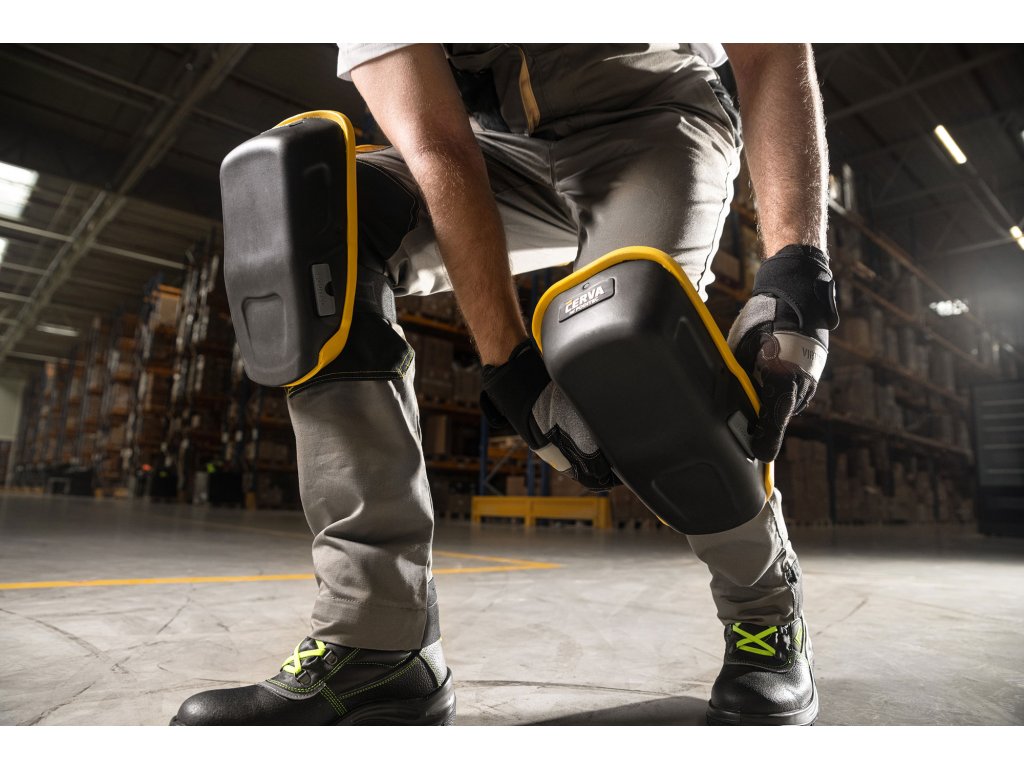Díky pevné a odolné konstrukci účinně tlumí nárazy a snižují únavu kloubů při delším kloubení nebo klečení. Chrániče mají nastavitelné popruhy, které umožňují jejich dobré uchycení na noze a minimalizují nežádoucí posouvání během pohybu.