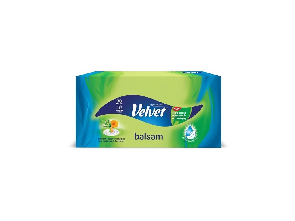 Papírové kapesníky 3vrstvé Velvet Balsam – extra jemné, 70 kusů
