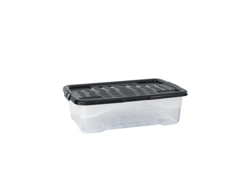 Transparentní plastový box pro archivaci dokumentů či pracovních oděvů. Prázdné boxy lze stohovat. Žebrování pro větší flexibilitu a ochranu před prasknutím. Víko lze jednoduše upevnit a následně snadno odejmout. Úchyty na kratších stranách umožňují snadné přenášení. Materiál: polypropylen. Rozměry: 60 x 39,7 x 25,2 (š x v x h). Objem: 42 l. Hmotnost: 1,03 g. Záruka: 5 let.