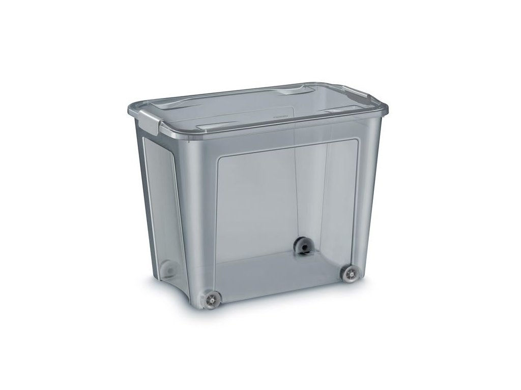 čního recyklovaného materiálu (kromě klipů). Ideální pro skladování zásob nebo jiných předmětů. Průsvitná kouřově šedá barva, odhalující obsah krabice. Vysoce kvalitní provedení. Velmi pevné zapínání na klip. Hrana kolem okraje krabice pro snadnou přepravu. Dokonalá ochrana proti vlhkosti, prachu a mechanickému poškození skladovaných předmětů. Stohovatelné. Barva: kouřově šedá. Materiál: recyklovaný PP (kromě klipů). 100% recyklovatelné. Vnější rozměry : 38,9 x 27,7 x 19,5 cm (v). Využitelné rozměry úložného prostoru: 28,5 x 20,5 x 17 cm (v). Hmotnost jednotky: 0,570 kg.