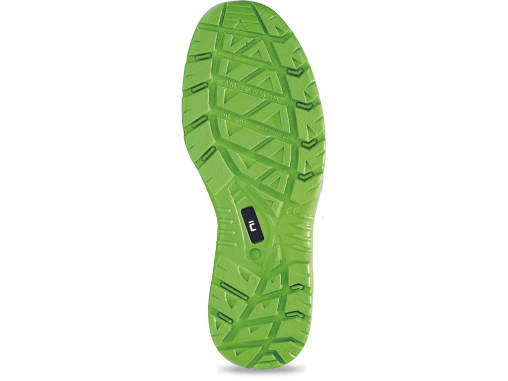 Bezpečnostní polobotka v moderní černo-zelené barevné kombinaci. Svršek obuvi je vyrobený z mikrovlákna a perforovaný po celé délce. Protiskluzová podešev vyrobena z dvouhustotního polyuretanu zajišťuje nejenom komfort, ale také maximální jistotu při každém kroku.