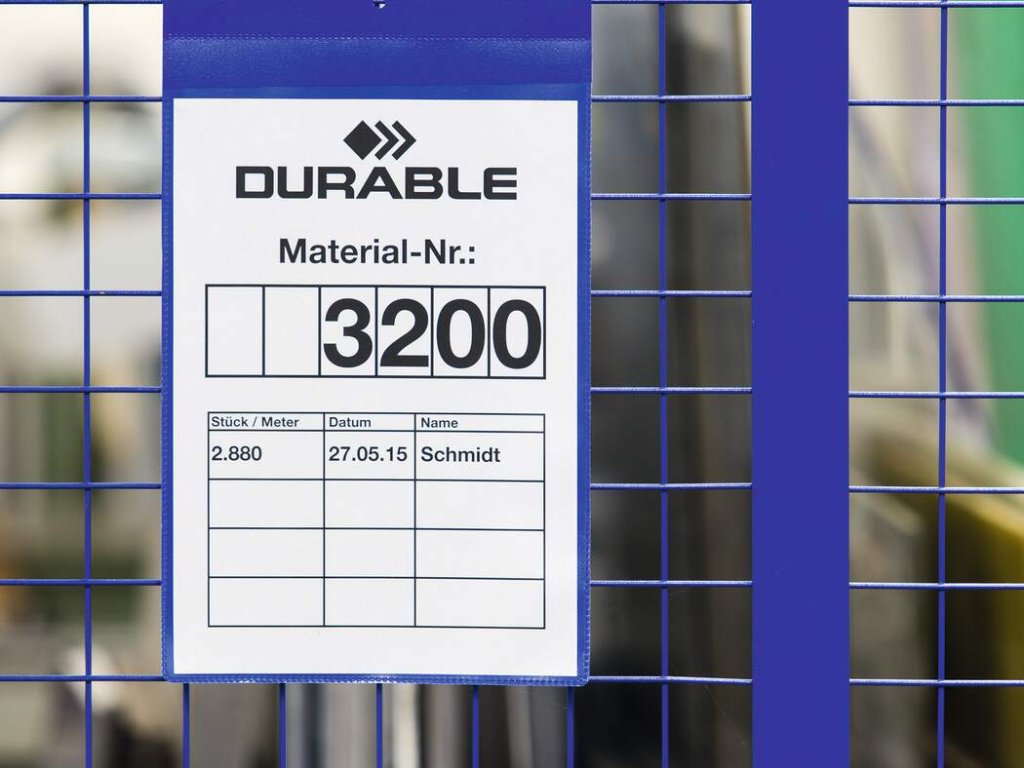 Magnetické identifikační kapsy na dokumenty DURABLE z kvalitního polypropylenu. Magnety umožňují uchycení na kovové povrchy, jako jsou skladové regály, kontejnery nebo boxy. Barevná zadní a transparentní přední fólie, která umožňuje skenování dokumentu a chrání etikety před vyblednutím. Rychlá výměna vkládacích papírových štítků.