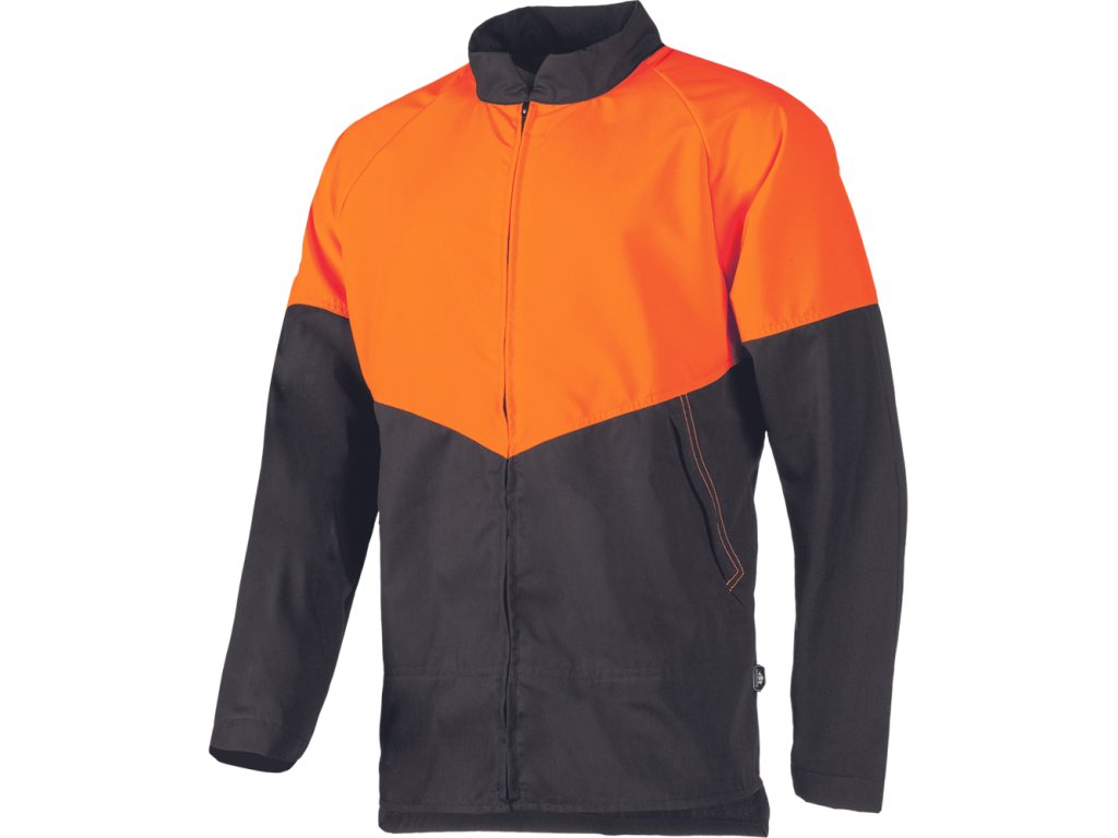 Pánská voděodolná bunda ideální zejména pro práci v lese, je snadno rozlišitelná v zeleném porostu. Má krátký rovný límec. Zapínání na zip. Dvě vsazené kapsy se zapínáním na zip. Větrání bundy vzadu, bunda má prodloužený zadní cíp.