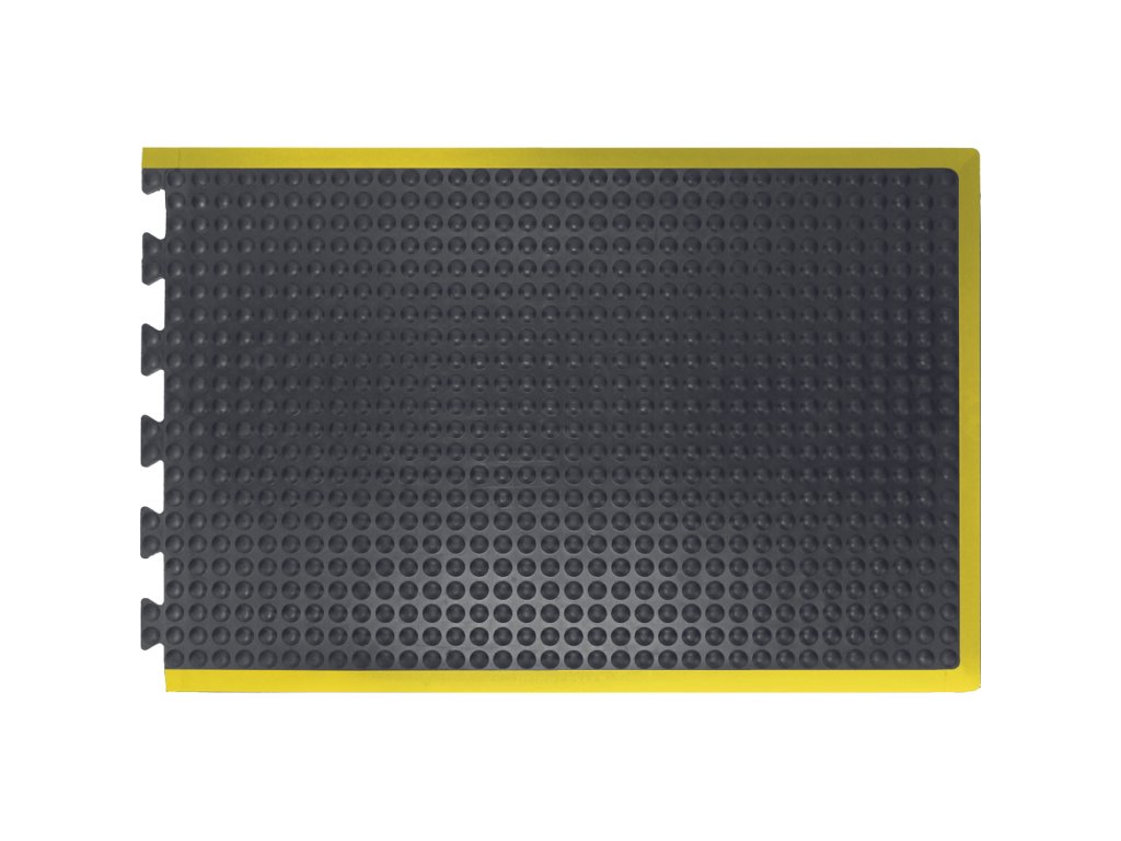 BUBBLEMAT rubber end mat je speciální druh podložky, která je navržena pro použití v průmyslových prostředích. Jedná se o robustní a odolnou podložku, která poskytuje vysokou úroveň bezpečnosti a ochrany pro zaměstnance v různých odvětvích. BUBBLEMAT rubber end mat je vyrobena z kvalitní gumy, která je odolná proti opotřebení, olejům a chemikáliím, což zajišťuje dlouhou životnost podložky. Podložka je navržena tak, aby poskytovala vysokou úroveň antiskluzu a protiskluzu, což zvyšuje bezpečnost zaměstnanců. BUBBLEMAT rubber end mat má speciální vzorek, který zvyšuje odolnost proti skluzu a zároveň zlepšuje komfort při chůzi a stání. Podložka má také speciální bublinkový design, který pomáhá snižovat únavu nohou a zlepšuje krevní oběh.