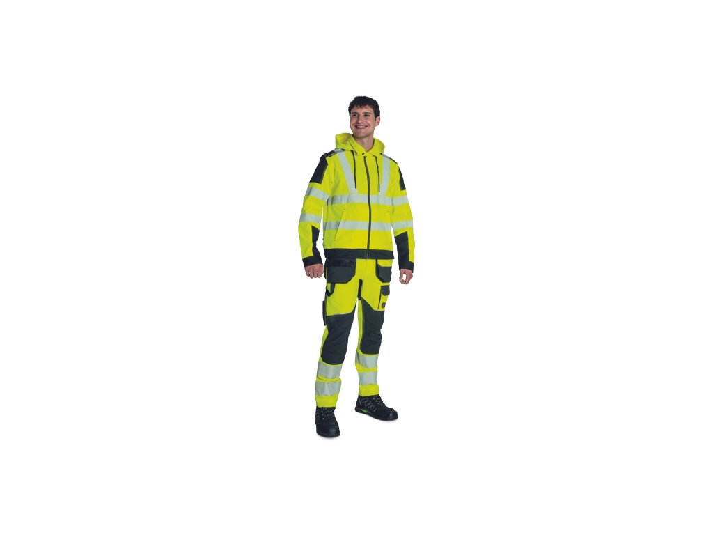 • HV polyesterová 4way strečová tkanina • segmentované reflexní design pruhy • dvě boční kapsy • odnímatelná kapuce • zesílení v oblasti ramen