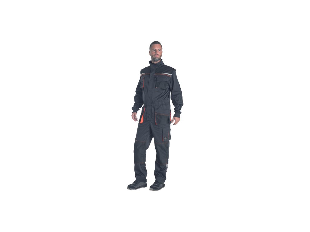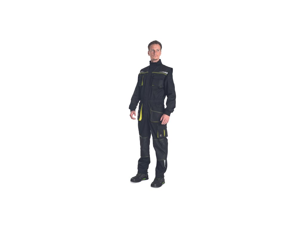 • pracovní vysoce odolný strečový overal s elastickým pasem • multifunkční kapsy • 2 náprsní kapsy z toho jedna na mobilní telefon • Oxford 600D zesílení v oblasti loktů a kolenních kapes pro vložení chráničů kolen • odepínací rukávy s pletenými elastickými manžetami • reflexní segmentové detaily • prodloužitelná délka nohavic