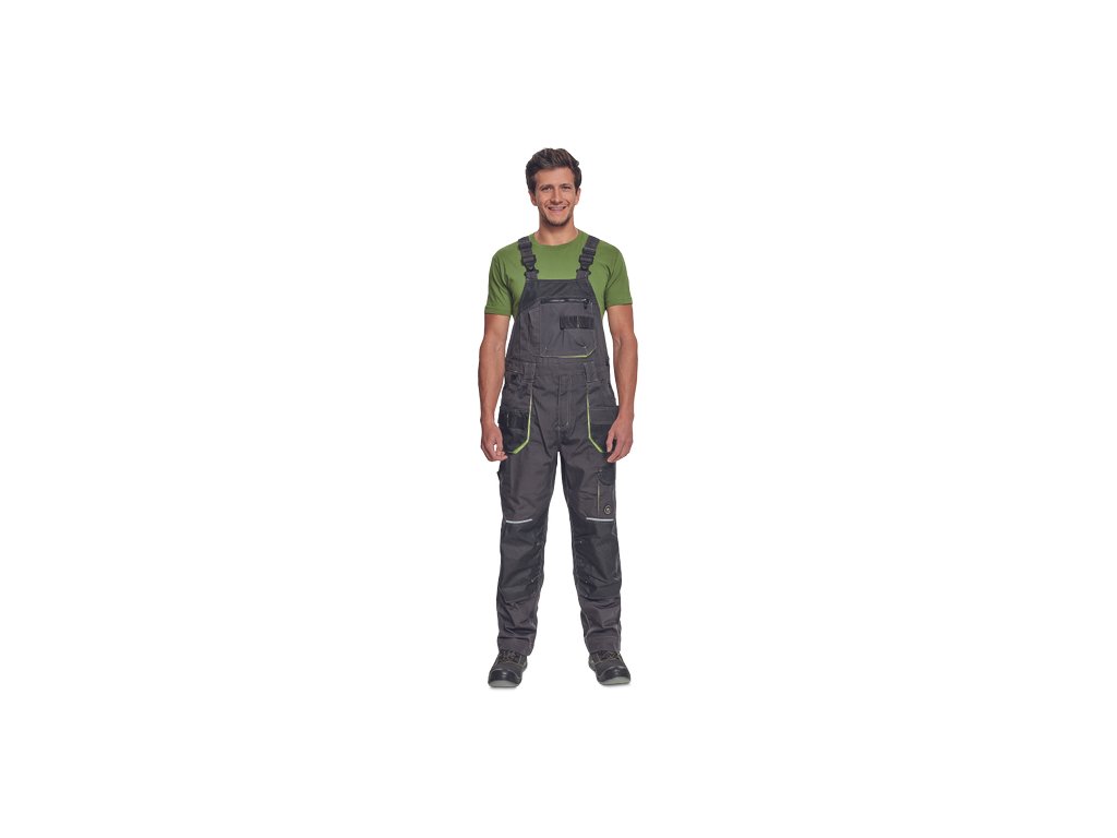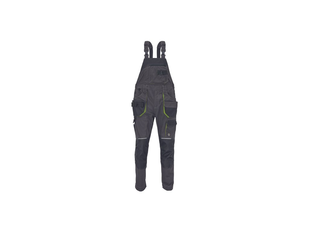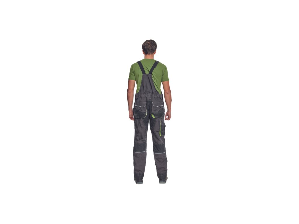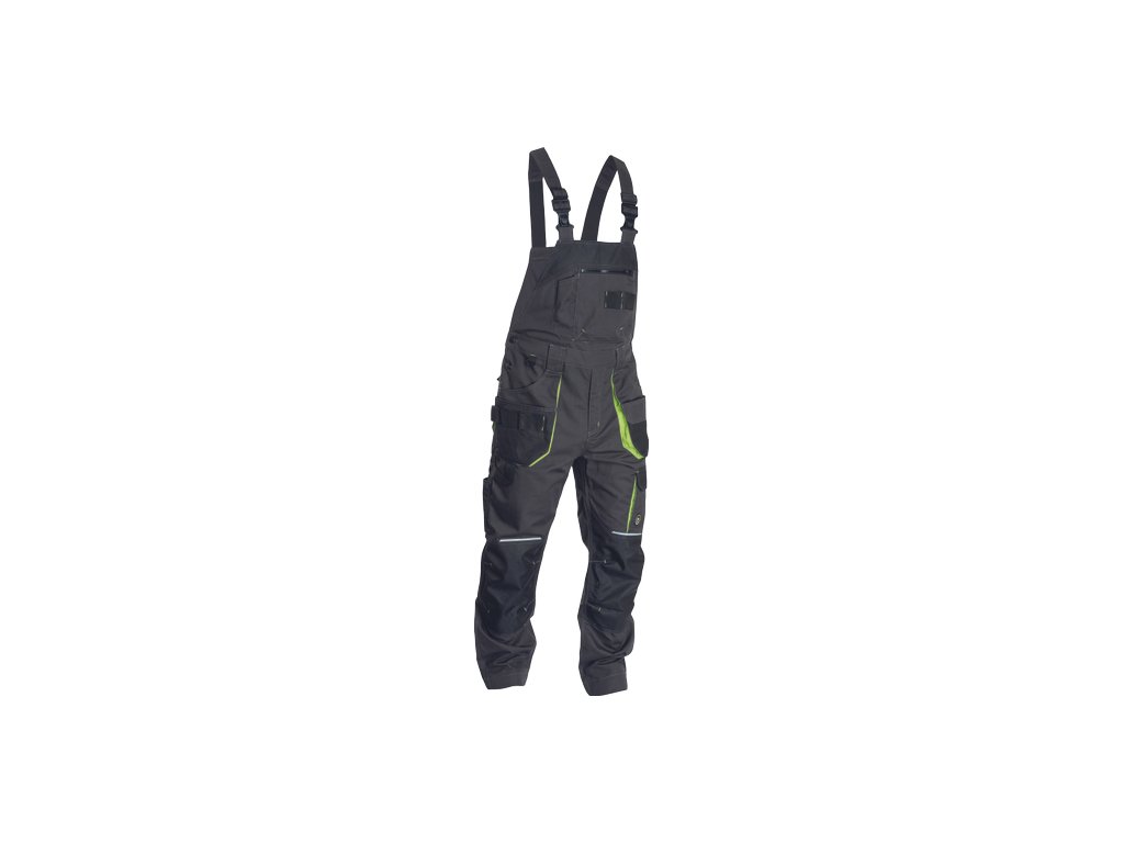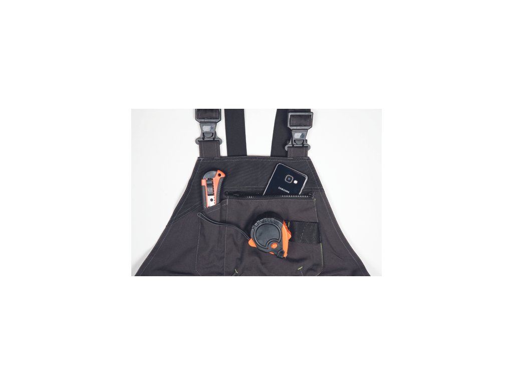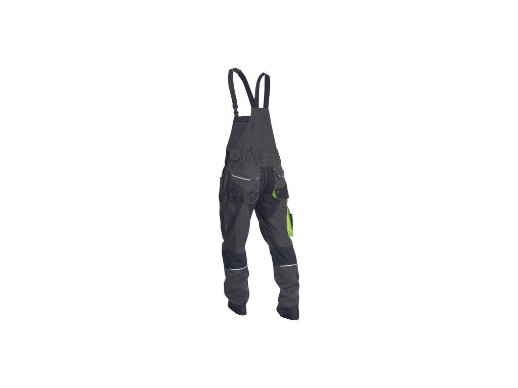 • pánské pracovní kalhoty s laclem, pružným pasem a multifunkčními kapsami • Oxford 600D zesílení kolenních kapes pro vkládání ochranných nákoleníků • odolné trojité prošití nohavic a sedu • reflexní prvky • nastavitelná délka nohavic