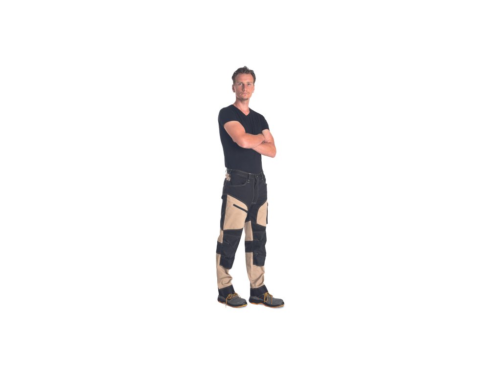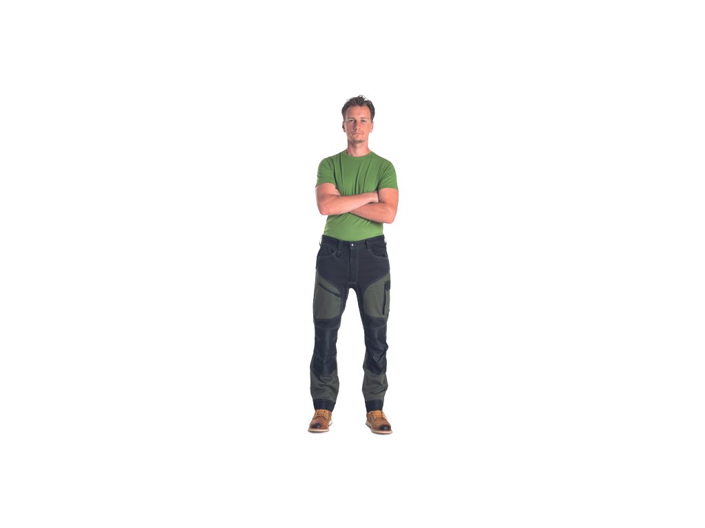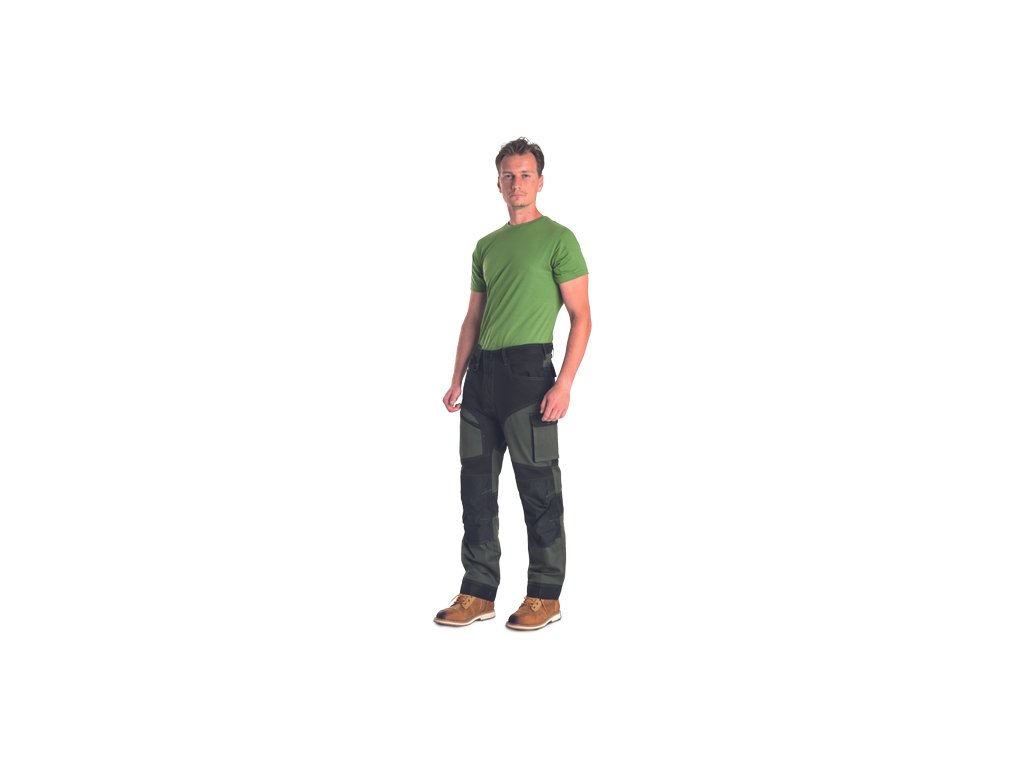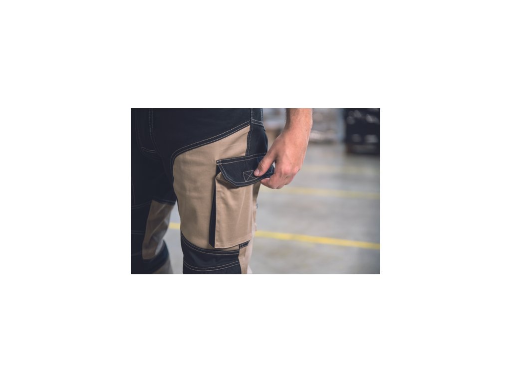 • kvalitní pánské pracovní kalhoty z elastického materiálu • 2 postranní kapsy • 2 zadní kapsy s klopami na suchý zip • 2 stehenní kapsy • zesílená oblast kolen s možností vkládání nákoleníků • záložka na nohavici umožňující prodloužení délky až o 5 cm • dekorativní prošití