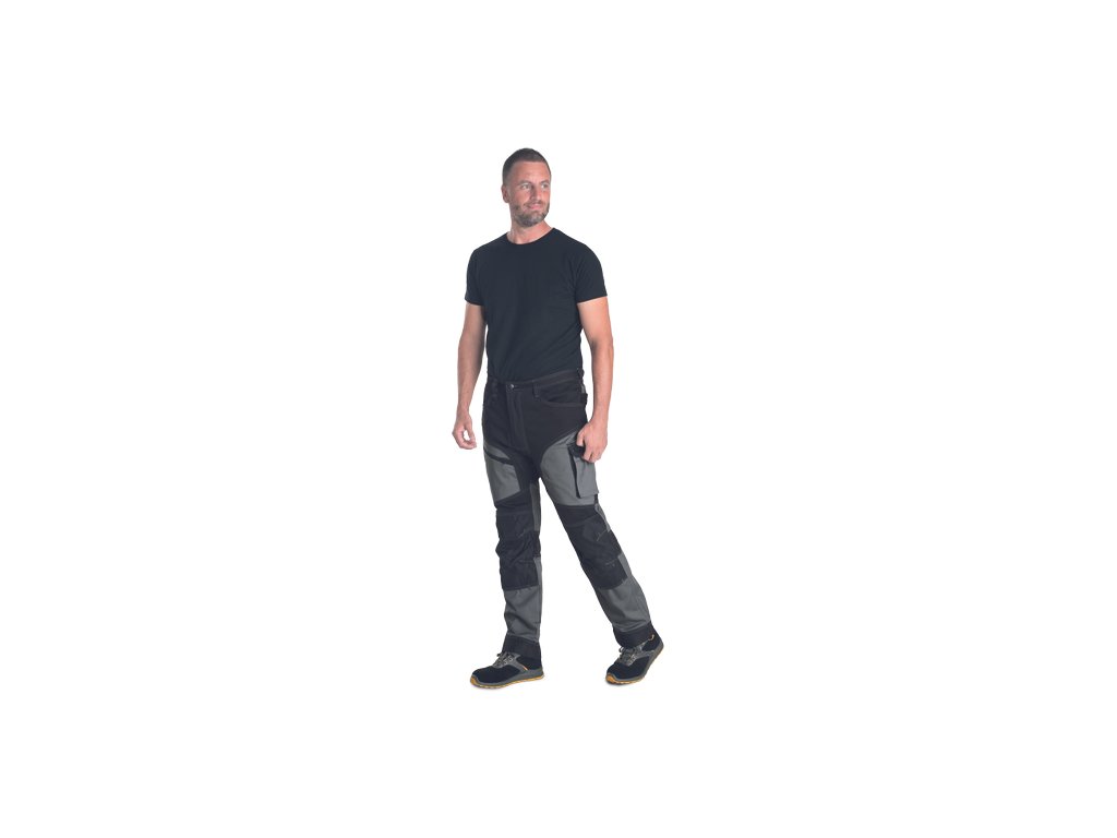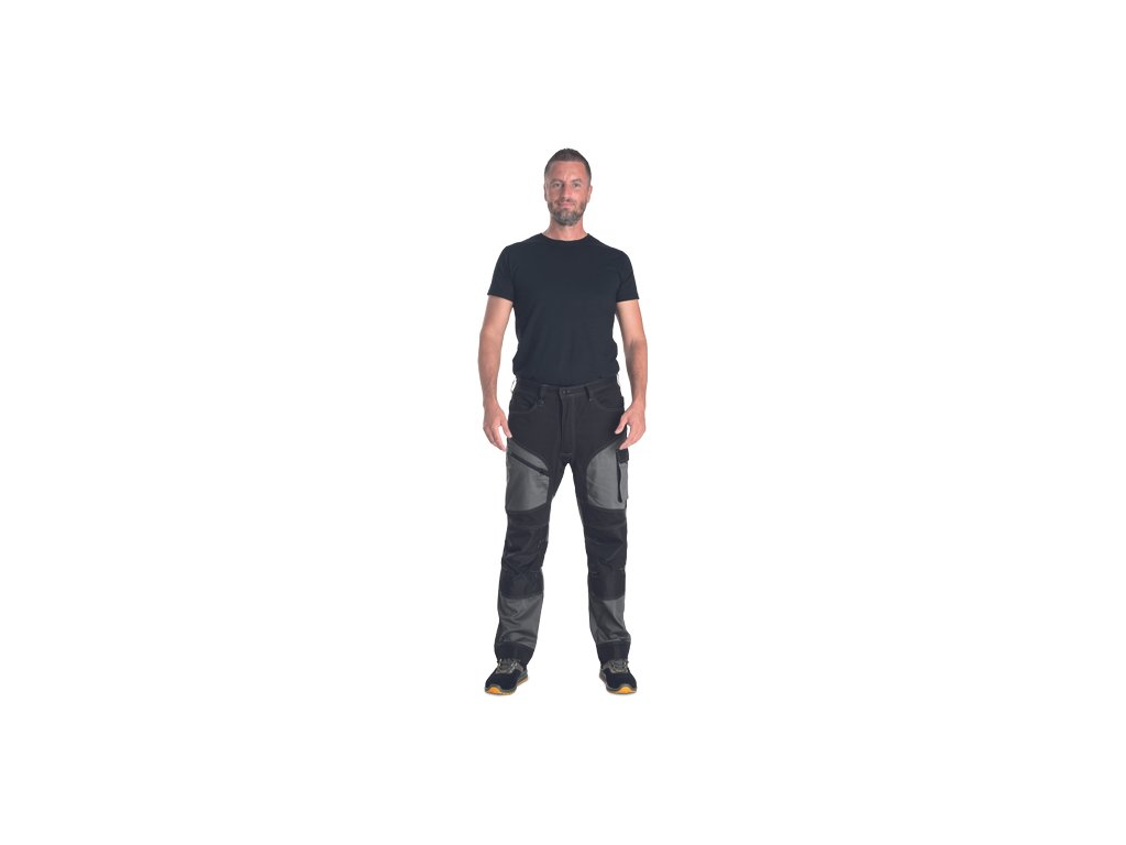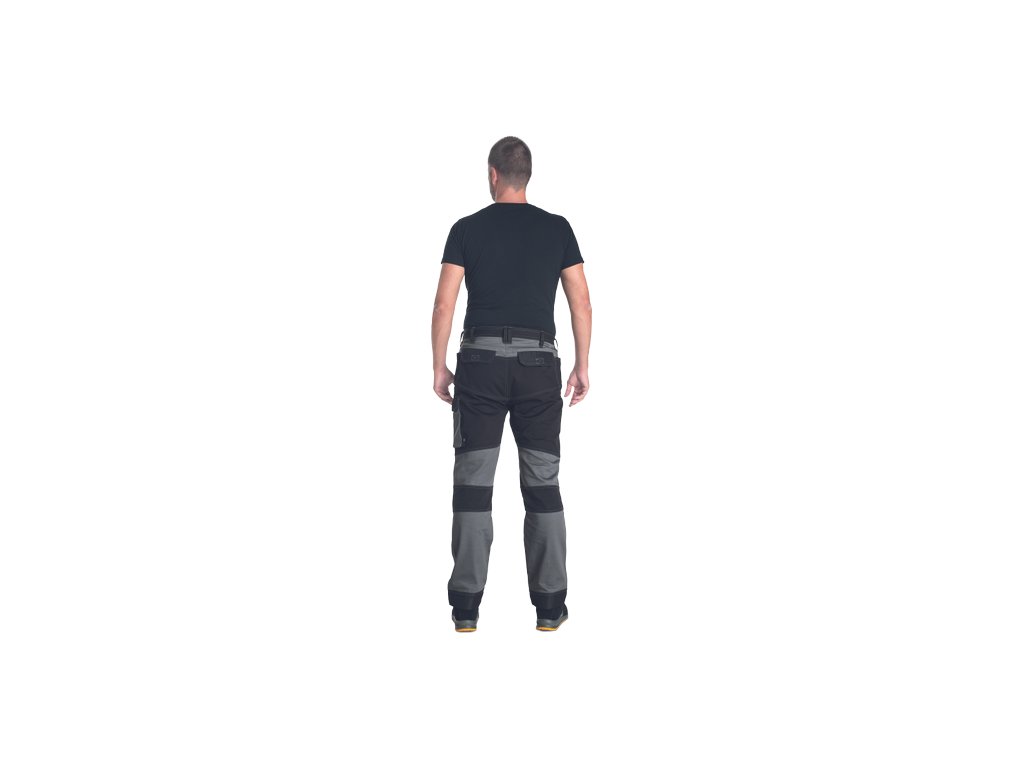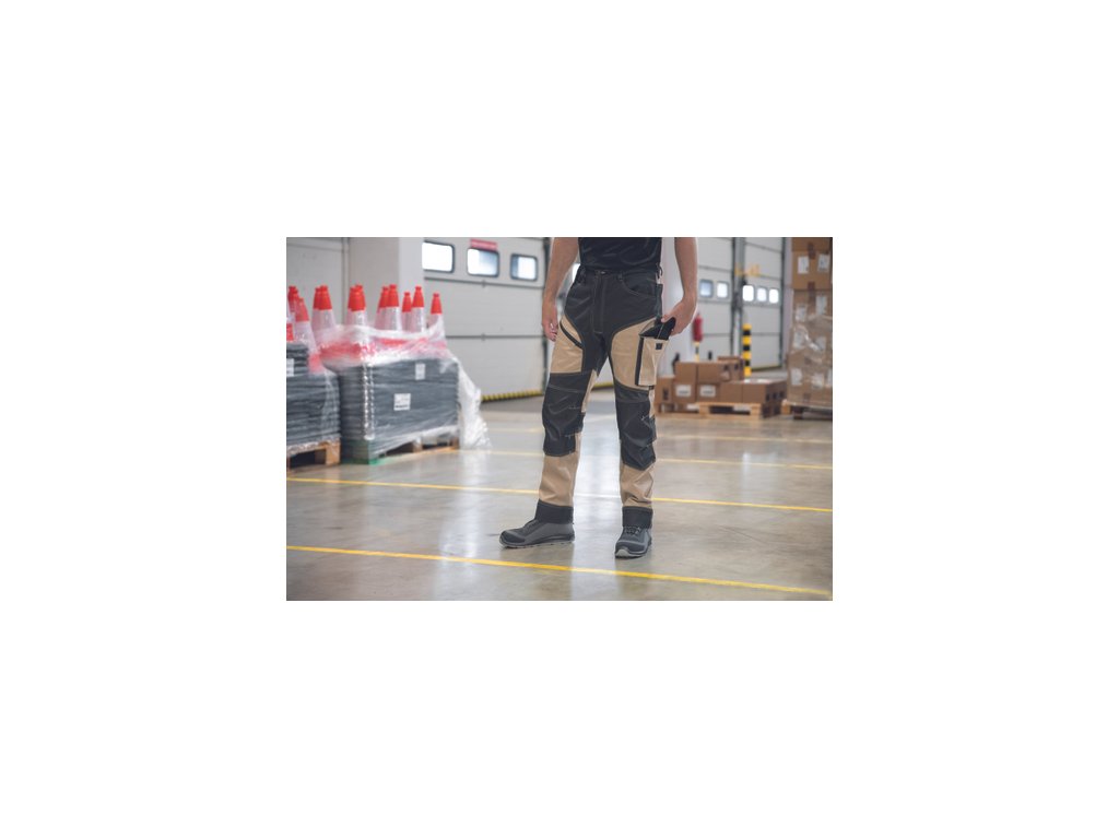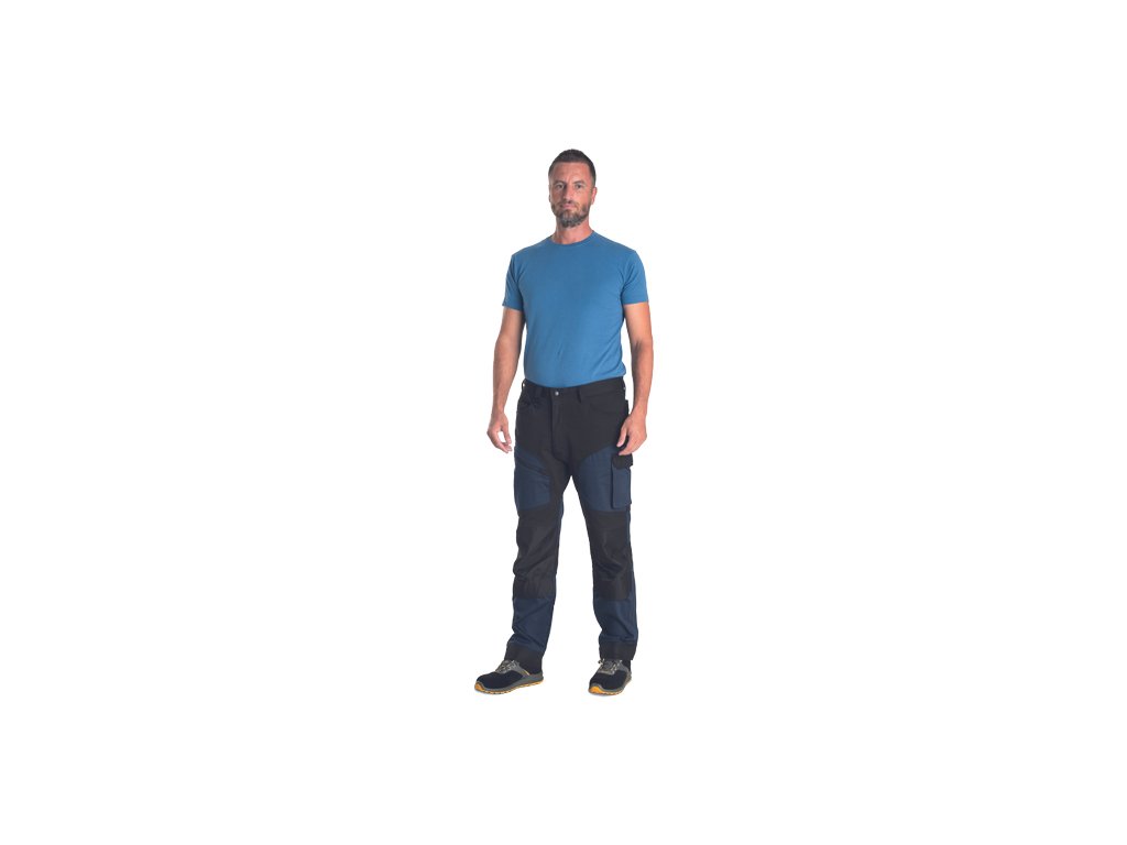 • kvalitní pánské pracovní kalhoty z elastického materiálu • 2 postranní kapsy • 2 zadní kapsy s klopami na suchý zip • 2 stehenní kapsy • zesílená oblast kolen s možností vkládání nákoleníků • záložka na nohavici umožňující prodloužení délky až o 5 cm • dekorativní prošití