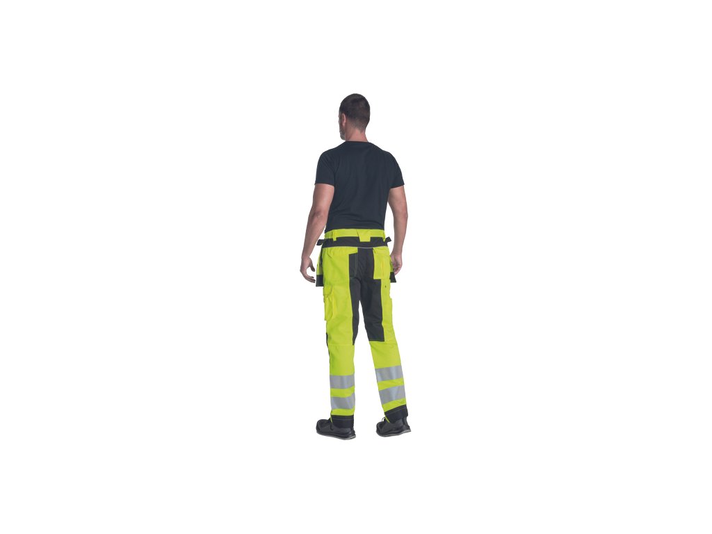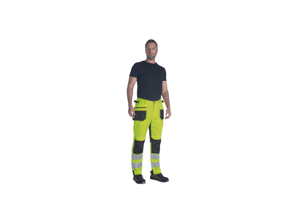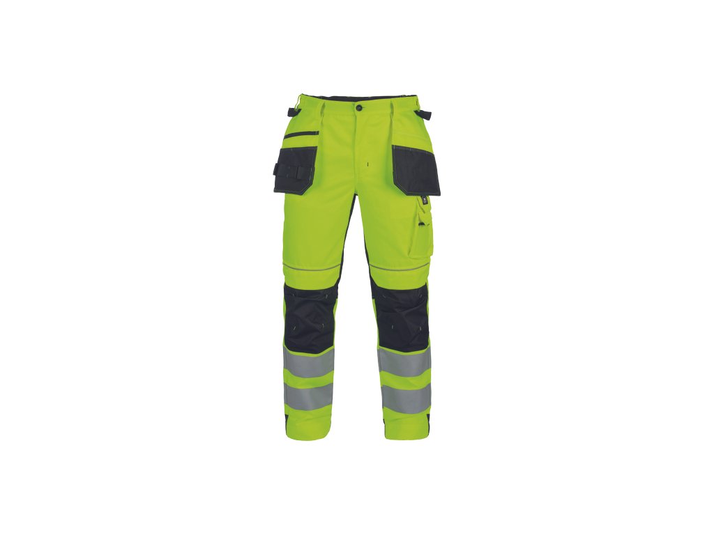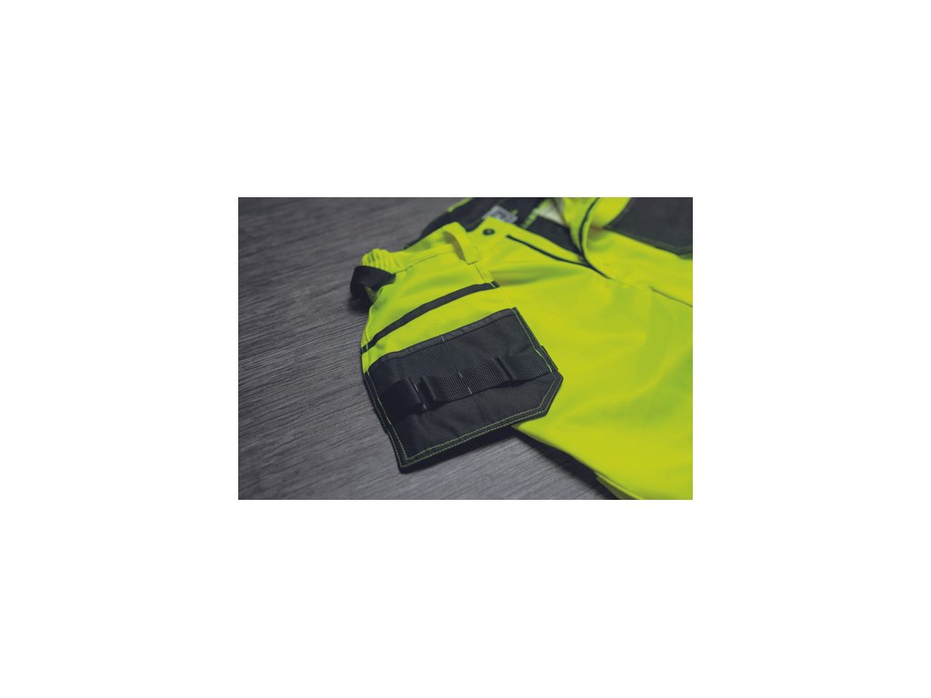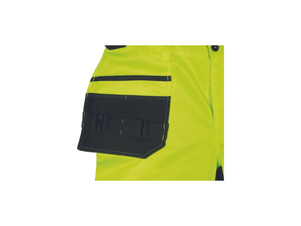 • pánské pracovní HI-VIS kalhoty s elastickým pasem • 2 multifunkční létací kapsy • 2 tištěné 7,5 cm široké reflexní pruhy na spodních nohavicích • zesílení kolenních částí Oxford 600D s možností vložení chráničů kolen • možnost prodloužení délky nohavic