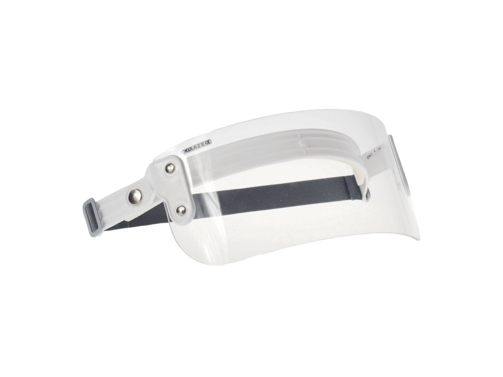 Ochranný štít bez náhlavního nosiče složený z čelního pásu a hledí z čirého PMMA. Hledí lze nastavit do optimální pracovní polohy. Štít je určen k ochraně očí a horní části obličeje proti nárazu velkých pevných částic. Umožňuje současné použití korekčních brýlí. Pro koho je ochranný štít vhodný: Je vhodný pro využití v průmyslu – pro všechny druhy mechanického obrábění zejména dřeva a plastů, pro montážní práce v elektrotechnickém průmyslu, pro kutilství, lze ho využít pro práci ve zdravotnictví, stomatologiích a laboratořích. Materiál zorníků: PMMA tloušťka 2 mm Optická třída: 2 Barva zorníků: čirá Velikost zorníků: 90 x 250 mm Možnost výměny zorníků: ano Možnost kombinace s dioptrickými brýlemi: ano Ochrana: mechanická Ochrana proti postřiku kapalinami: ne Ochrana proti nárazu: zvýšená pevnost S Odolnost proti teplotám: -5 °C / +55°C Materiál nosné části štítu: RYKOLEN Hmotnost: 73 g Typ náhlavního nosiče: čelní pás se změkčenou oporou Odpovídá normě: EN 166 Atestace CE: ano.