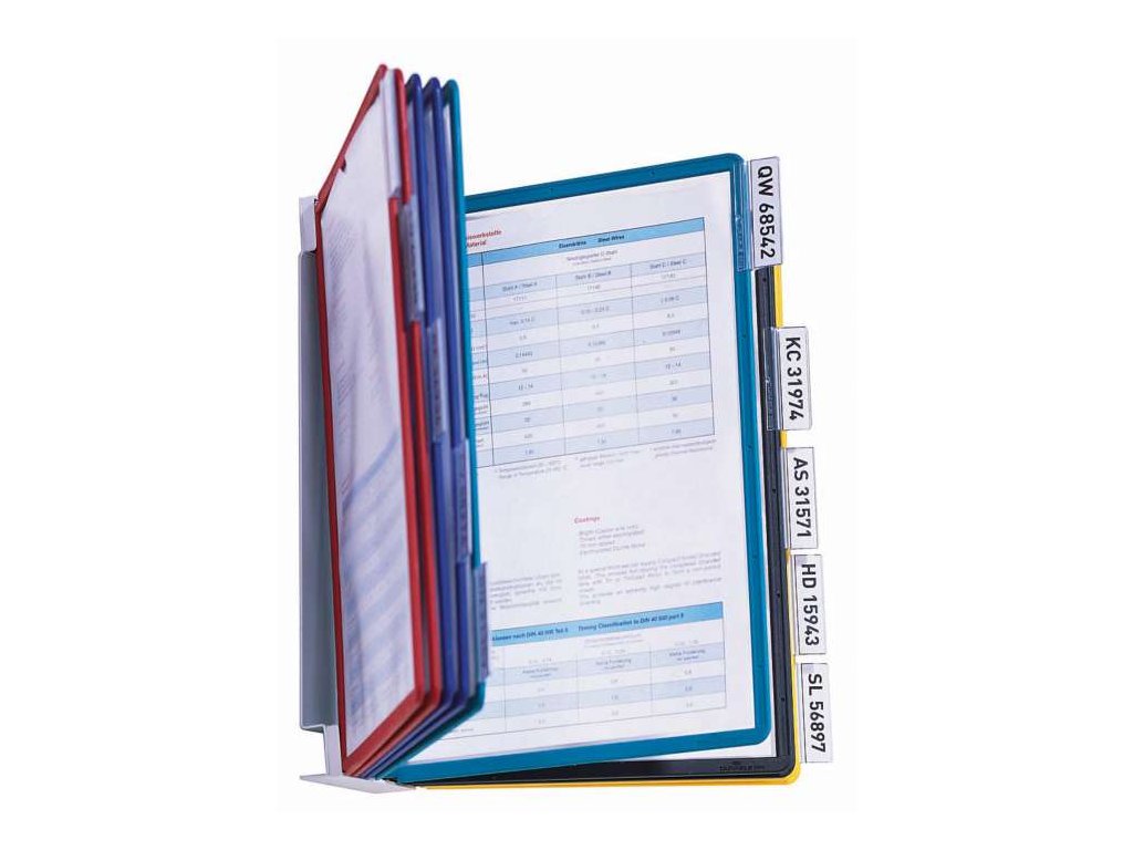 Kovový nástěnný držák VARIO s tabulkami je praktickým pro rychlé vyhledávání potřebných informací.