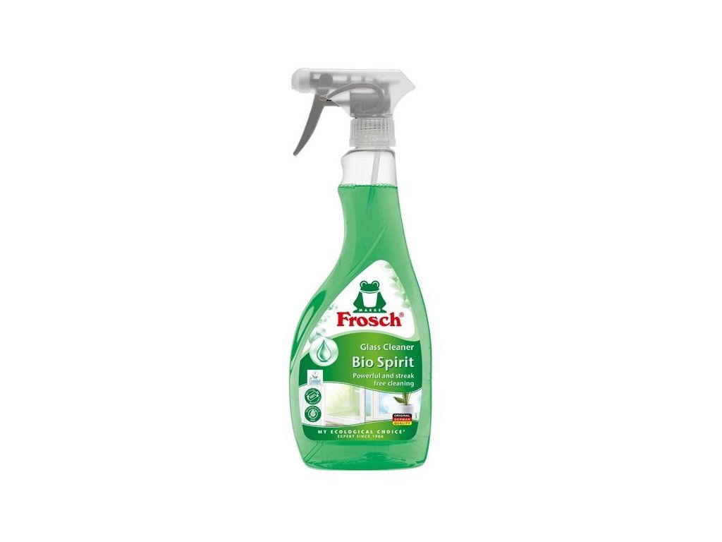 Ekologický čistič oken Frosch s bio alkoholem zajišťuje dokonale čistá, lesklá a bezešmouková okna i skleněné povrchy.