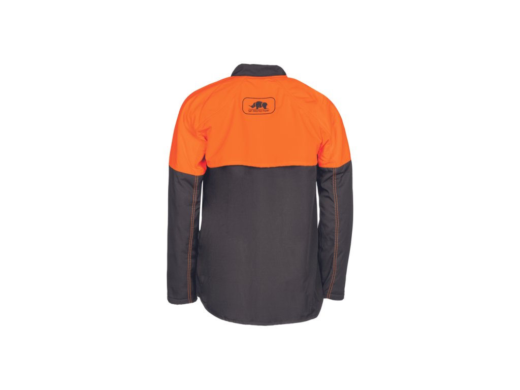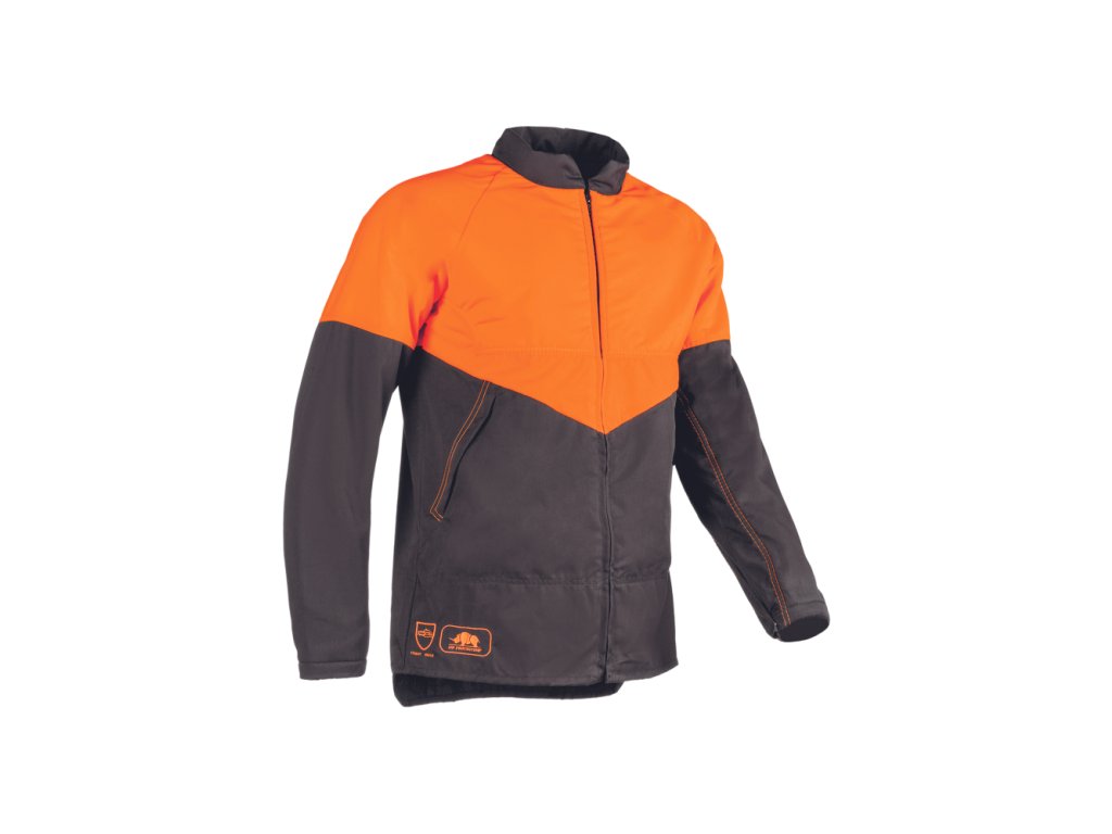 Pracovní bunda určená pro dřevorubce poskytující ochranu proti pořezu. Vnější tkanina je vyrobena z voděodolného polyesteru s bavlněným podílem, která je ideální pro sezónní nebo dočasné lesnické práce. Bunda je vybavena 8 vrstvovou ochranou na ramenou, ramenou a hrudníku, která splňuje normu EN 381-11. Bunda má krátký a rovný límec a uzavírá se pomocí zipu. Vnitřní strana bundy je vybavena dvěma kapsami se zipem pro bezpečné uložení osobních věcí. Rukávy lze upravit pomocí knoflíků, což umožňuje přizpůsobitelnost a pohodlí. Pro zajištění dobře prodyšnosti bundy je na zadní straně umístěno odvětrání. Zadní díl bundy je prodloužený, což přináší lepší ochranu v oblasti ledvin. Vnitřní vlastnosti bundy zahrnují 8 vrstvovou ochranu na ramenech a hrudníku podle normy EN 381-11. Tato technologie poskytuje vysokou úroveň ochrany při práci s řetězovou pilou.