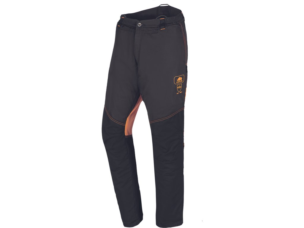 pánské protipořezové kalhoty s elastickým pasem, poutky na opasek a připevnění šlí 2 postranní kapsy 1 zadní kapsa 1 malá stehenní kapsa.
