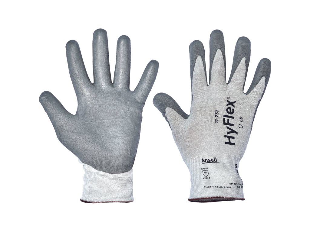 Pletené bezešvé rukavice, 18GG úplet, protiřezná vlákna INTERCEPT™ Technology, PU povrstvení, Pletené zápěstí.