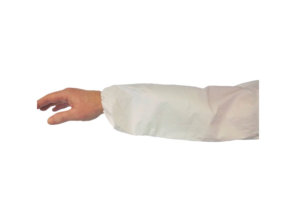 Všeobecná ochrana před látkami, které nejsou zdraví nebezpečné. Vzorek na spodní části snižuje riziko uklouznutí. Elastické provedení u kotníku. Elastické manžety. Ochranný návlek na rukáv poskytuje 16 palců ochrany, která zakrývá rukáv od zápěstí po rameno, a je opatřen elastickým zakončením nahoře i dole.