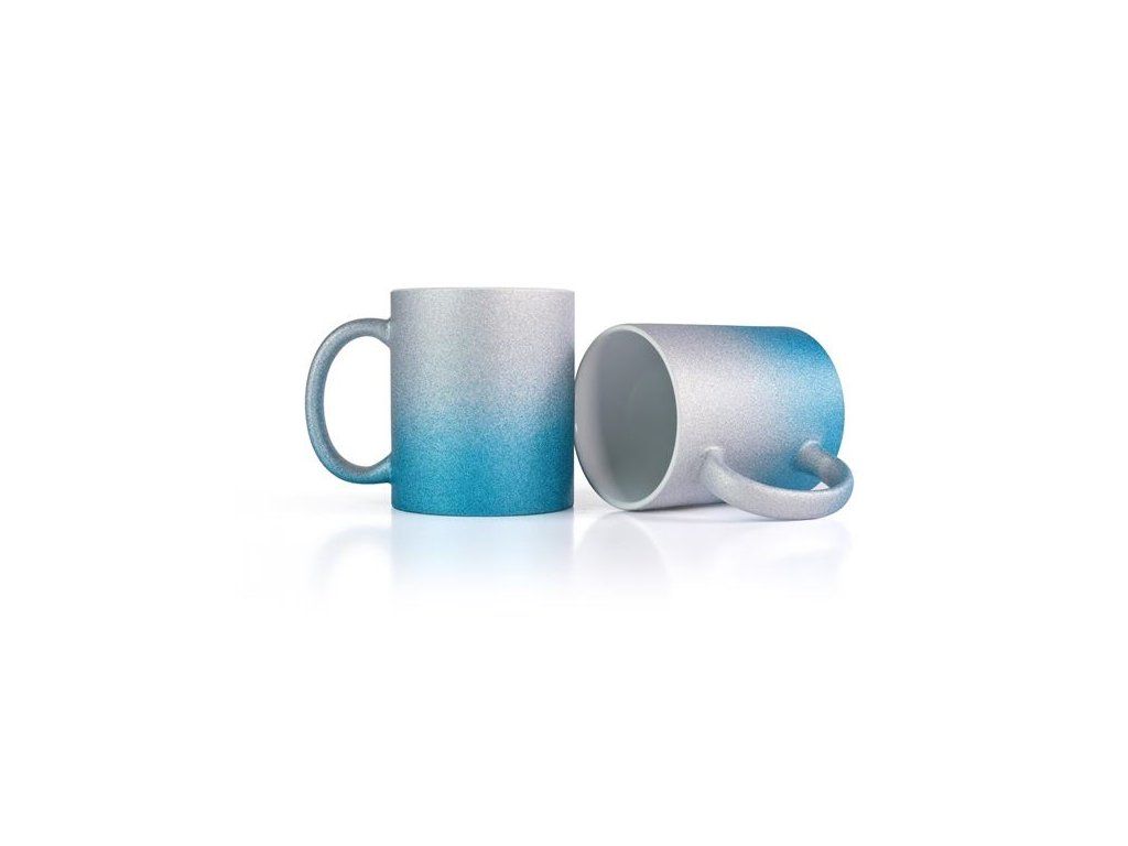 Stylový keramický hrnek určený pro sublimační potisk v elegantním třpytivém provedení modro-stříbrné barvy. Ideální pro tvorbu originálních dárků, firemních předmětů i osobních motivů.