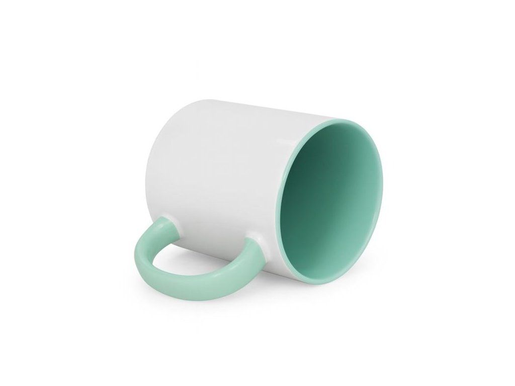 Vnější bílá plocha poskytuje perfektní základ pro plnobarevné motivy, fotografie, texty i firemní loga, které díky hladkému povrchu vyniknou v té nejlepší kvalitě. Design hrnku je doplněn o svěží mátové ucho a vnitřek, které mu dodávají moderní a jemně barevný vzhled. Tento kontrast působí elegantně a zároveň hravě, takže hrnek skvěle zapadne jak do domácnosti, tak do kanceláře. Ergonomicky tvarované ucho v mátové barvě zajišťuje pohodlné držení, zatímco kvalitní keramika pomáhá udržet teplotu nápoje po delší dobu. Hrnek je vhodný pro každodenní používání – na kávu, čaj i další oblíbené nápoje.