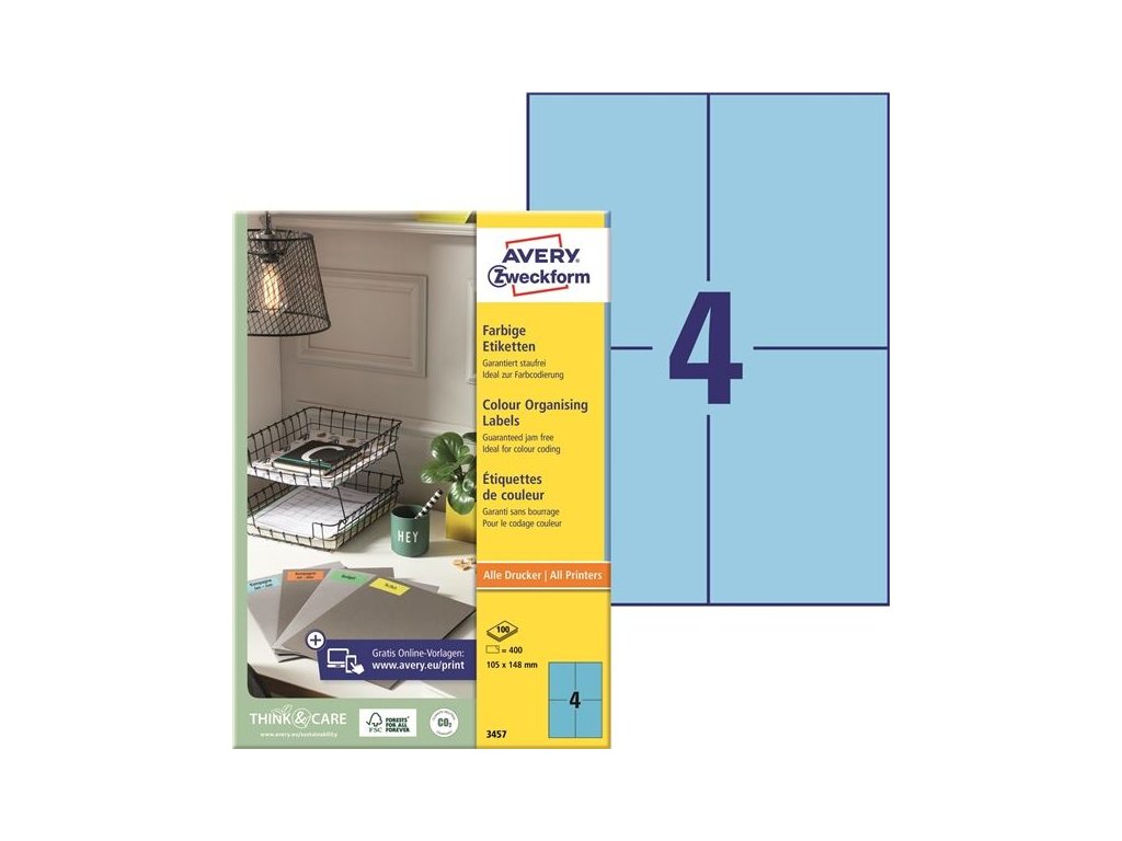 Univerzální etikety Avery Zweckform - modré, 105 x 148 mm, 400 ks