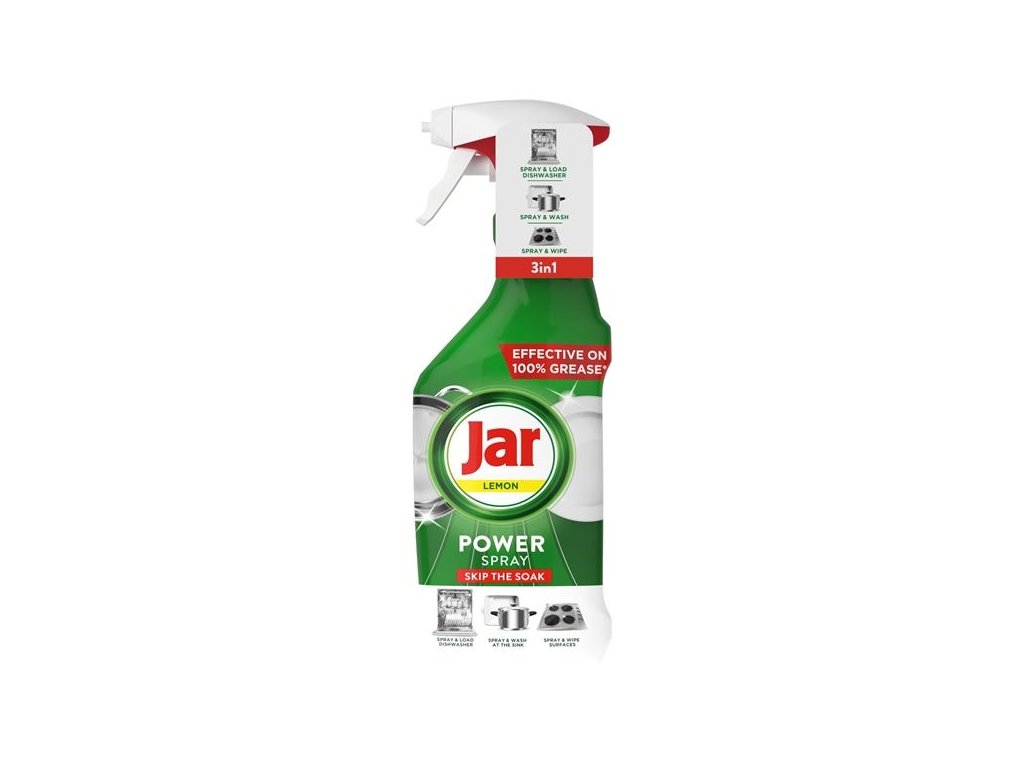 Multifunkční čistič Jar Power Lemon ve spreji účinně odstraňuje mastnotu a nečistoty z nádobí i kuchyňských povrchů.