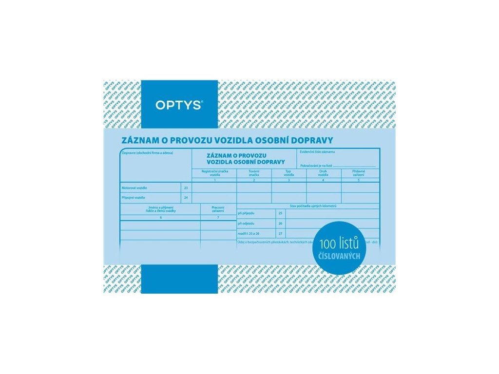 Tento dokument slouží firmám kde si evidují počet ujetých kilometrů počet členů ve vozidle a jména přepravujících osob. Díle se zaznamenává údaje o automobilu se kterým se vyjelo na služební cestu nebo cesta za zákazníky. Tento dokument obsahuje 100 nepropisovacích listů, které mají zakládací děrování. Formát tohoto dokumentu je A5 na šířku. Tento dokument má na každém papíru číslování a není propisovací.