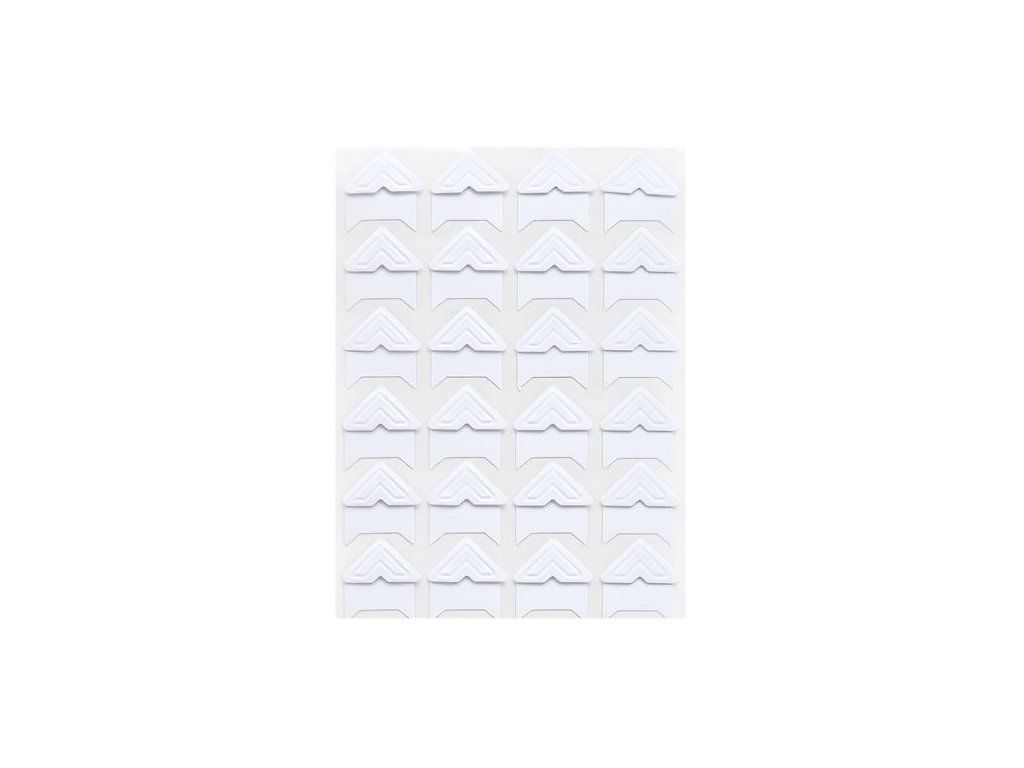 Bílé samolepicí rohy do alb umožňují snadné a šetrné uchycení fotografií bez lepení.