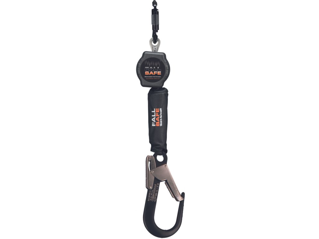 Fall safe samonavíjecí zachycycovač pádu FS930-TB s popruhem 2m oválná karabina na zachycovači a hák otevření 60mm na popruhu.