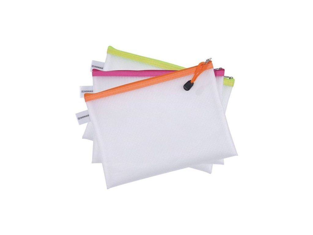 Odolná síťovaná zipová obálka Donau ve formátu A4 v mixu barev je ideální pro přehledné ukládání dokumentů i drobností.